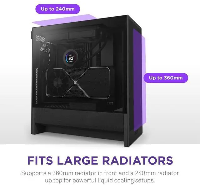 H5 Flow 2024 - Compact ATX Mid-Tower PC Gaming Case - High Airflow - 2 x 120mm Fans Included - 360mm Front & 240mm Top Radiator Support - Cable Management System - Tempered Glass - Black