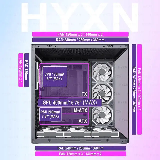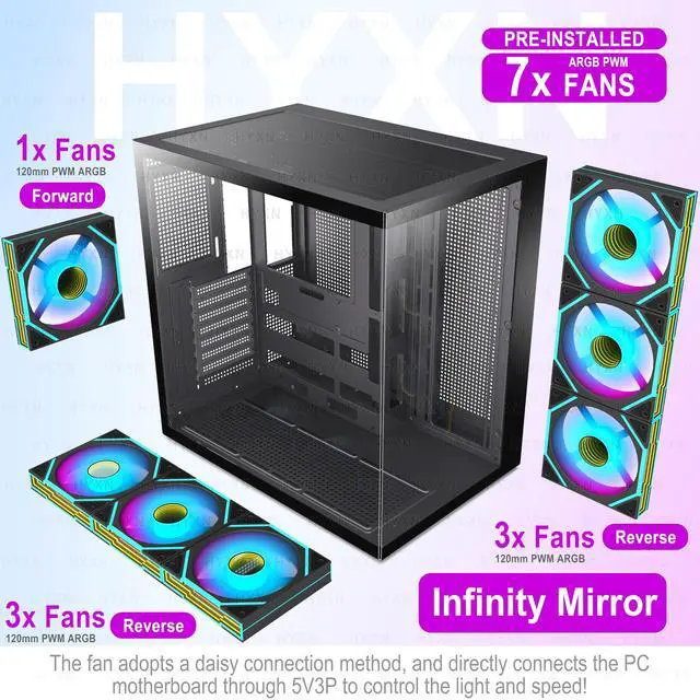 ![]() HYXN H3 HYXN ATX PC Case - Pre-Installed with 3 ARGB Fans - Dual Cavity Mid-T... | ![]() HYXN H3 HYXN ATX PC Case - Pre-Installed with 6 PWM ARGB Fans - Dual Cavity M... | ![]() HYXN H1 HYXN ATX PC Case - Pre-Installed with 7 PWM ARGB Fans - Dual Cavity M... | ![]() HYXN H3max HYXN ATX PC Case - Pre-Installed with 7 PWM ARGB Fans - Dual Cavit... | ![]() HYXN H2 (2026) HYXN ATX PC case – Pre-Installed 8 PWM ARGB Fans (6X140mm, 2X1... | |