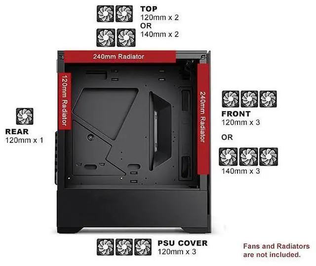 | Fan: | Not Included (Recommended: b-ARGB Vortex 120 fan is availble for purchase) | Included: 6 x 120mm ARGB fan | Included: 6 x 120mm ARGB fan | no data |