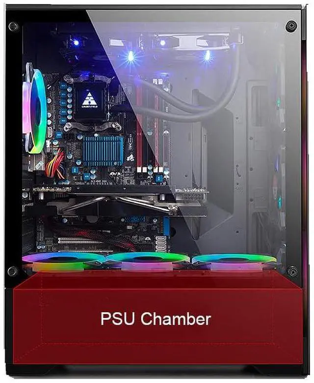 Hinged Tempered Glass Window for easy access to chassis interior.