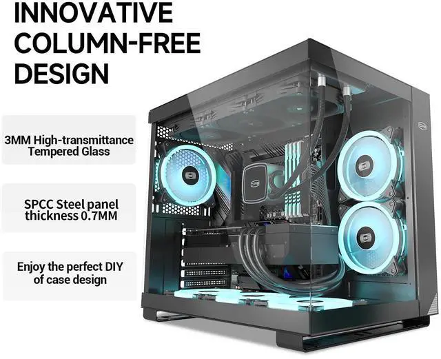 • UNOBSTRUCTED VIEWCPS C3T500 pc case uses 3MM thick clear and high-definition transparent tempered glass, innovative column-free design will better show inside the well-designed computer cases by PC gamers. The other part of CPS computer case uses 0.7MM thick SPCC material, which has a high-end aesthetic while ensuring a long service life of the pc case.