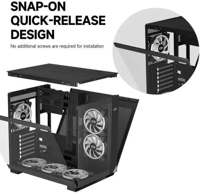 • SIMPLER INSTALLATIONPCCOOLER desktop pc cases with simple design for more convenient installation. The PC case plate uses the snap-on quick-release design, no longer need to match a lot of screws, is adopted for the side panel, making it easy to be assembled and disassembled(Please refer to the installation instructions)