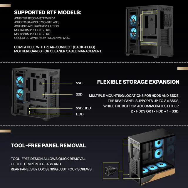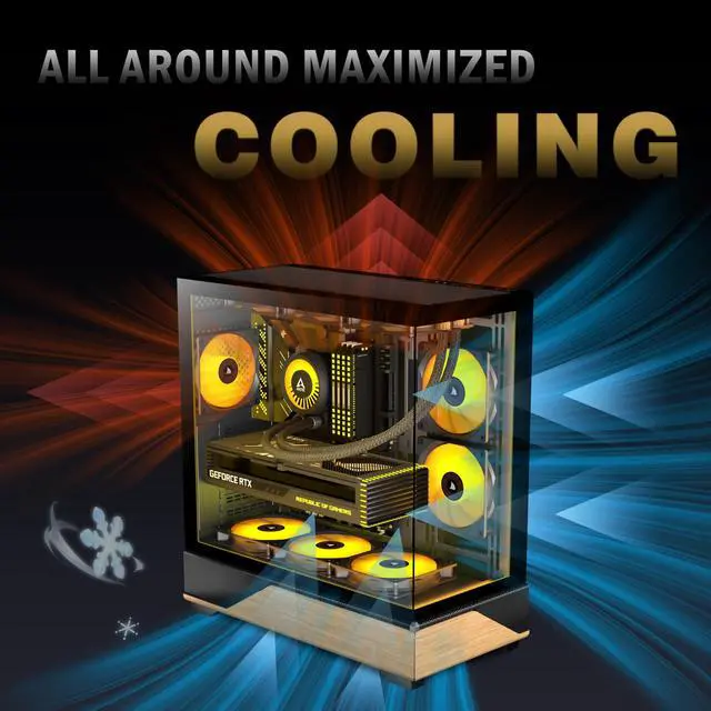 [Panoramic Design with 270°Wide Angle View ]-- The 270°panoramic mid tower case features fully glass-covered front and side panels, providing a clear view of internal hardware. Diamond cut angles offer a transparent and aesthetically pleasing display, creating a unique visual effect;providing great comfort for office/gaming environments!