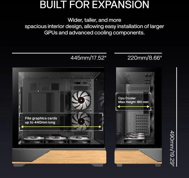[Remarkable Expansion]-- (1)The Mid Tower Gaming Computer Case supports ATX / Micro-ATX / Mini-ITX motherboards.(2) Support 360mm Radiator (3) CPU cooler height maximum 180MM (4) GPU length maximum 440MM (5) Power supply type ATX up to 220MM (6) Equipped with HDD and SSD trays (7) Expansion PCIE-Slots 7 (8)Fits up to 10 x 120mm Case Fans and 2x simultaneous radiators.