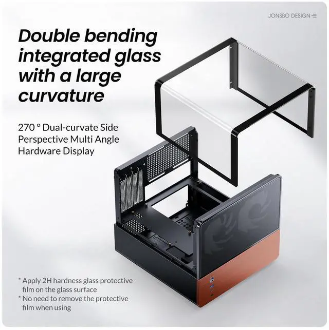 Double bending integrated glass with a large curvature 270 ° Dual-curvate Side Perspective Multi Angle Hardware Display suitable for desktop multi-angle arbitrary place ment of display surface(*Apply 2H hardness glass protective film on the glass surface * No need to remove the protective film when using) Easier to build your PC,More convenient.