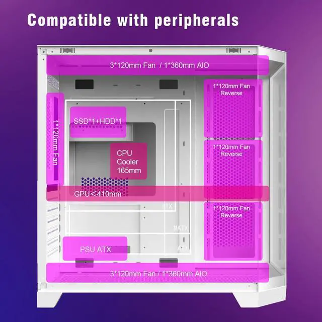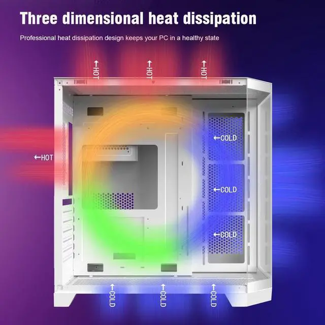 Ventilation and Dust ProtectionThe case can support up to 10 fans or 7 fans with a 360mm AIO liquid cooler. The top and bottom feature large magnetic dust filters to prevent dust from entering, ensuring the case remains clean and performs optimally.