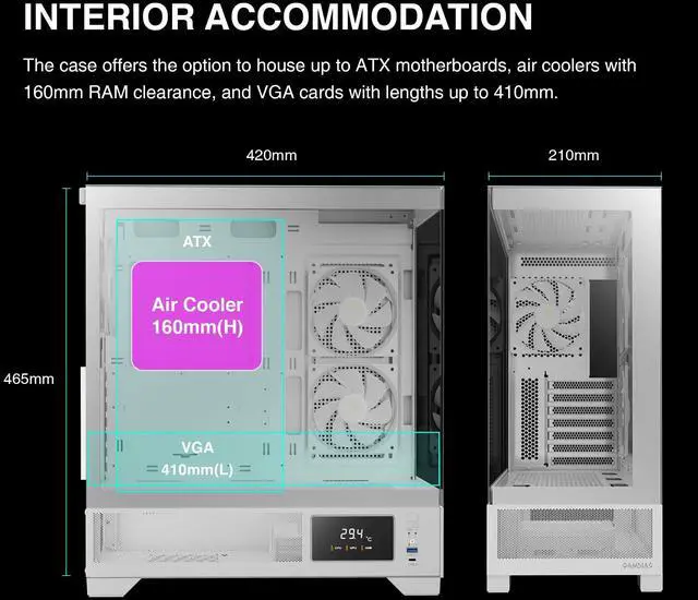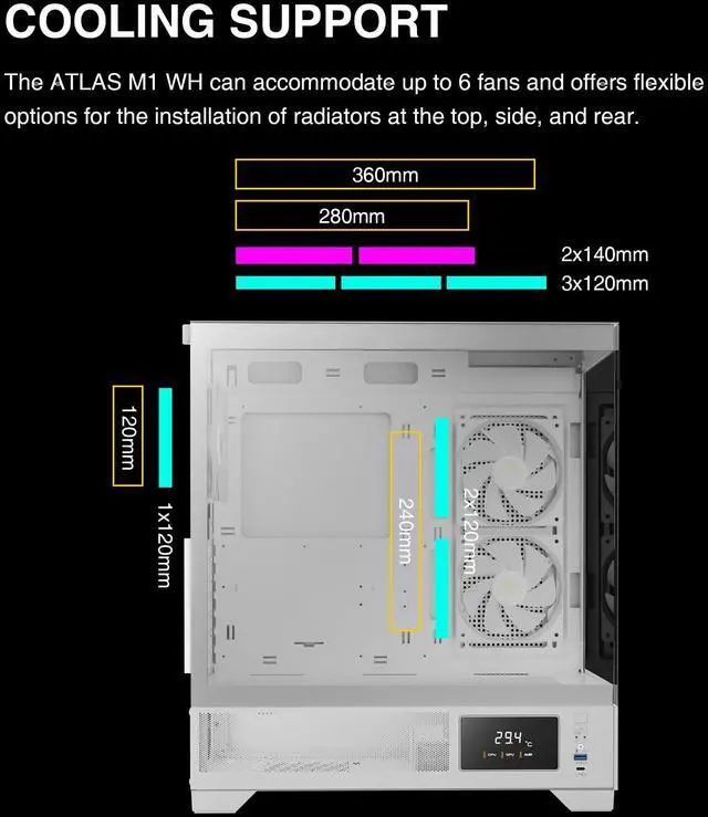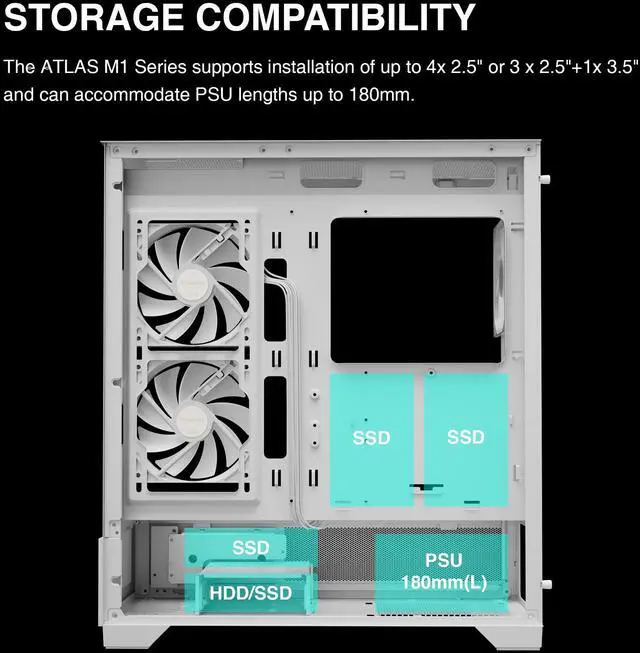 The GAMDIAS Atlas M1 White Mid Tower Gaming Case combines style, functionality, and performance for serious gamers. Featuring a radiant RGB lighting system, this case allows for full customization to showcase your gaming setup's personality. It's built with versatility in mind, supporting ATX, microATX, and mini-ITX motherboards, and offers an optimized cooling architecture to maintain peak performance. The sleek white design not only adds a touch of elegance but also highlights the vibrant RGB colors, making your setup stand out. With its spacious interior, the Atlas M1 accommodates all your gaming components comfortably, ensuring your rig looks clean and plays cool. Whether you're building a new PC or upgrading your current one, the Atlas M1 is designed to elevate your gaming experience.