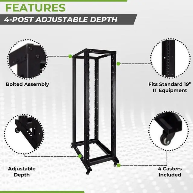 DESIGN & AIRFLOW - The open frame design of this 42U data rack promotes unobstructed airflow, vital for maintaining the performance of server and network hardware. It provides quick and easy access to equipment, enhancing operational efficiency in technology settings.