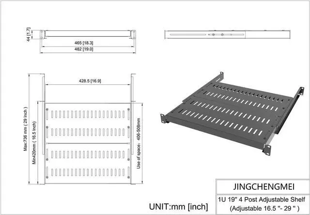 Adjustable Depth: This 1U 19" vented shelf is designed with an adjustable mounting depth range of 16.5 -29 inches to accommodate various rack mount.