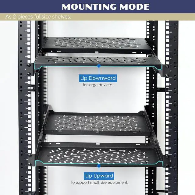 Versatile Mounting: Detachable ears & dual install methods. Lip up prevents falls; lip down fits deep equipmentflexible & practical.