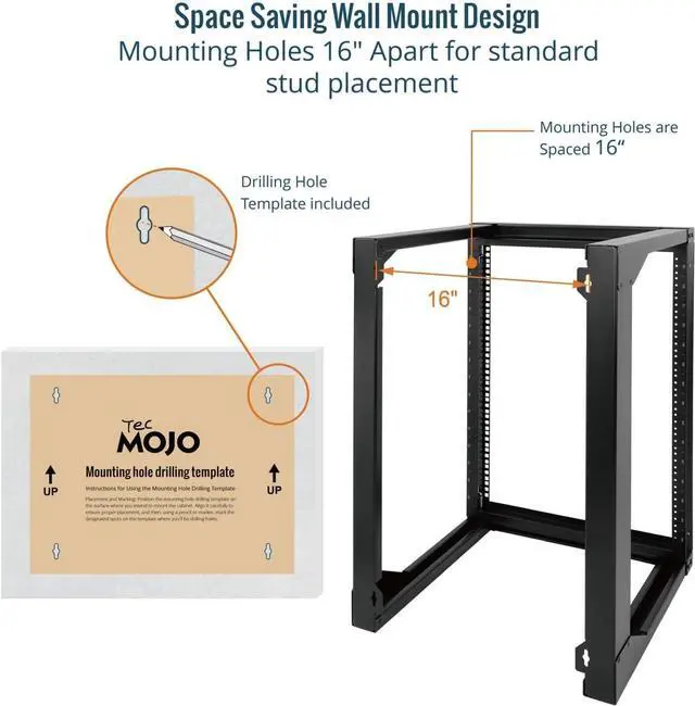 Specification: 15U Wall Mount Rack, 16inch apart Mounting holes; 18inch Depth; Square hole or tapped hole installation can be switched with each other