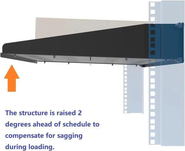 Good Loading Capacity Design: 2U rack mount shelf is tilted upwards by 2 degrees to compensate for load capacity.