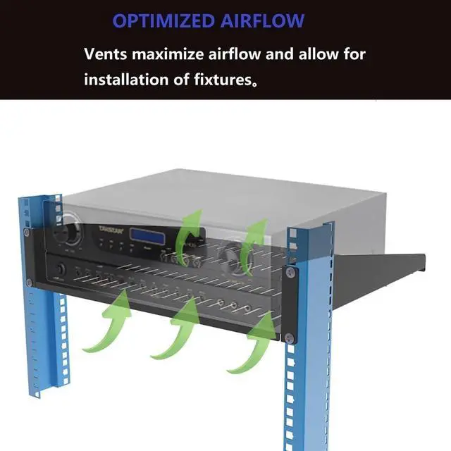 Universal Compatibility: This 2U vented server rack mount shelf after assembled is designed to fit standard 19-inch server racks and network cabinets.