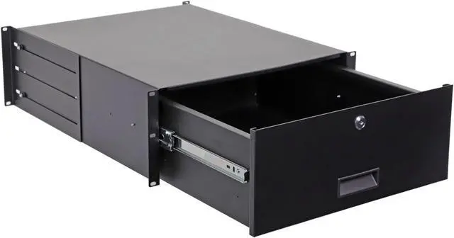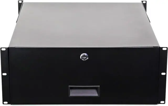 LOCKABLE DRAWER: Locks securely with the included keys to meet requirements towards Data Security compliance. Locking rack drawer slides smoothly into rack when not in use.