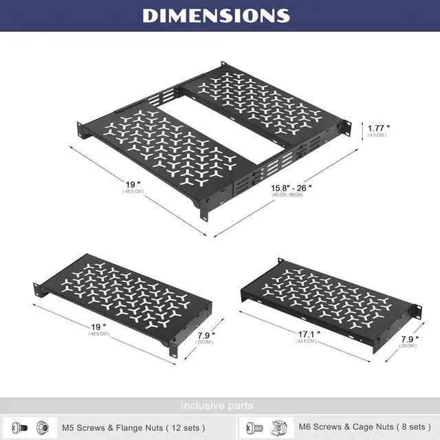 Vented Cooling: The ventilated cantilever tray design helps with equipment ventilation and heat dissipation, creating a good operating environment for IT equipment, servers, network routers, etc.