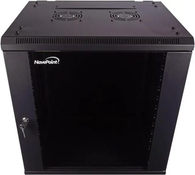 ENHANCED VENTILATION & SECURITY Two built-in top fans and flow-through ventilation work to prevent overheating, ensuring optimal operation of your equipment. The reinforced, lockable tempered glass front door not only boosts security but also facilitates easy monitoring of installed equipment.