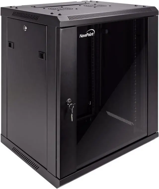 DURABLE - Crafted from cold-rolled steel with a protective black powder coating, the 12U NavePoint Performance Series network cabinet provides sturdy, reliable housing for network and server equipment. Capable of supporting up to 130 lbs, it' s an ideal, durable solution for installers working on long-term projects.