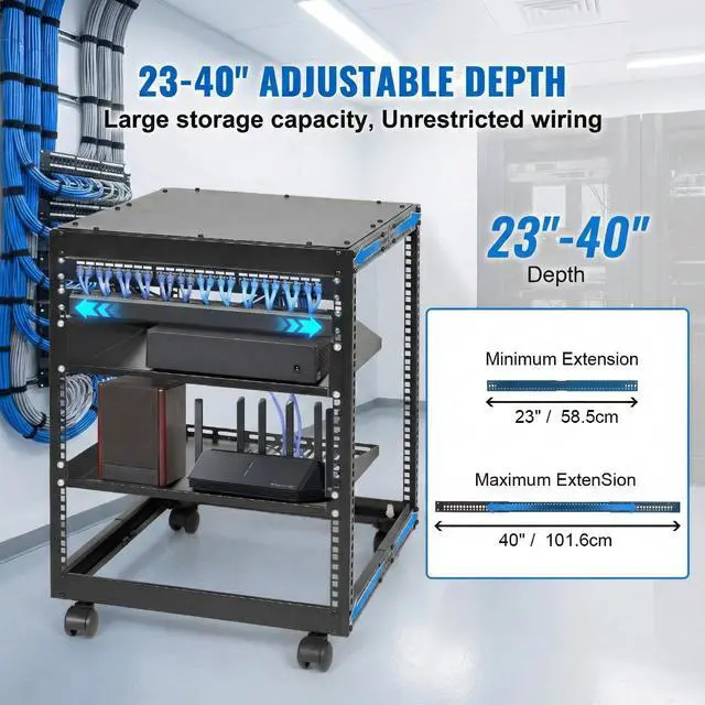 12U Adjustable Open Frame Server Rack with Casters and Top Panel