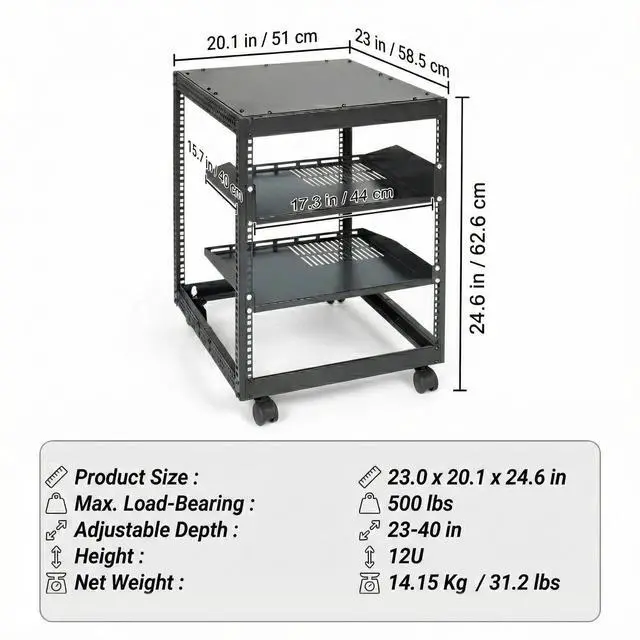 | Product Type | 12U 4-Post Open Frame Server Rack |