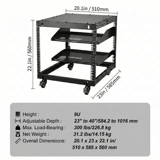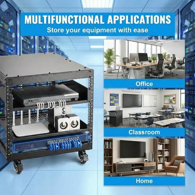 The 9U 4-Post Open Frame Server Rack is engineered to provide a robust, flexible, and cost-effective solution for housing your critical IT and A/V equipment. Whether you are setting up a home lab, organizing a small business server closet, or equipping a classroom, this rack adapts to your specific needs.