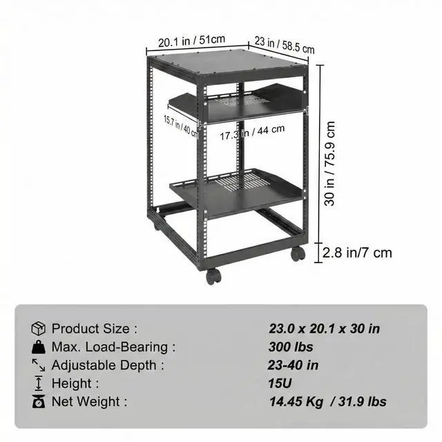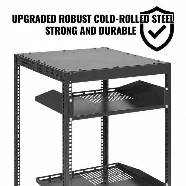 Adaptable for Various Equipment The defining feature of this network rack is its adjustable depth, ranging from 23 inches to 40 inches. This allows it to house diverse equipment depths, from deeper servers to shallower switches and AV components, while ensuring plenty of room for clean cabling. The open-frame structure provides unobstructed airflow to keep devices cool and allows for easy maintenance access from all sides.