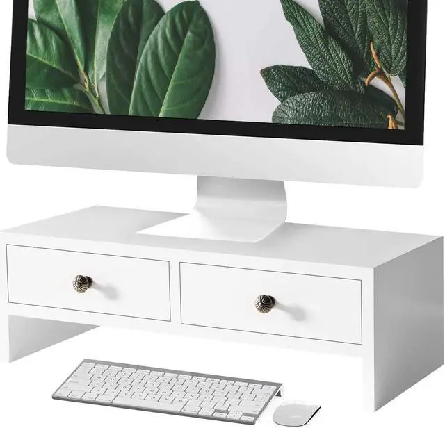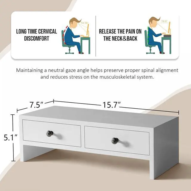 Neat & Orderly: The monitor riser stand has 2 drawers to store your pens, notes, notebooks, tape and other office supplies. The bottom can store your keyboard, mouse and laptop.