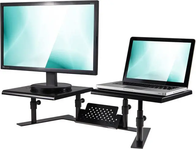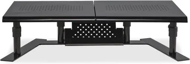 Freestanding space saving design reduces clutter. Works with any monitor - no VESA mounts required. Supports proper ergonomics for viewing monitors, laptops or TV