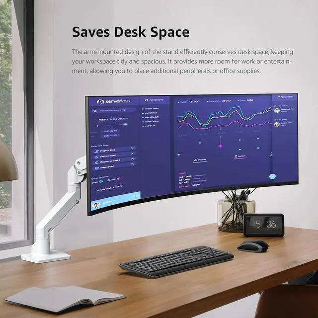 More Ergonomic Design: The Ultrawide Monitor Arm Reclaims valuable desk space by replacing bulky monitor stands; easily adjusts ultra-wide, curved monitors or curved gaming monitors across an expansive range of motion for comfortable, personalized views sitting or standing. Release strain on the neck & shoulders.