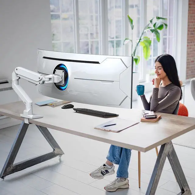 Easily adjusts ultrawide, curved monitors or curved gaming monitors across an expansive range of motion for comfortable, personalized views sitting or standing. The high-grade material gas spring arm can be extended and retracted, +90°/-15° tilt and +90°/-90° swivel to change reading angles, and 360° rotate from landscape to portrait mode.