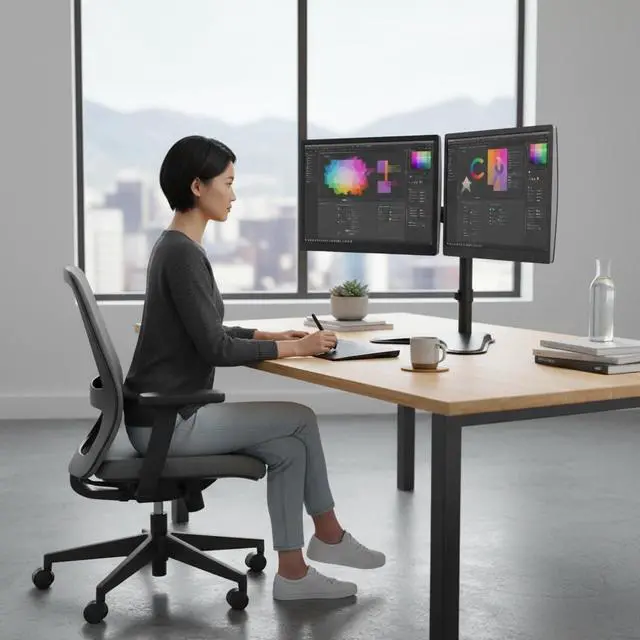 Optimal Ergonomics: With the ability to independently adjust each monitor for height, angle, and rotation, this stand helps reduce neck and eye strain, promoting better ergonomics at your workstation. The best dual monitor stand for those who prioritize comfort and adjustability in their desk setup.