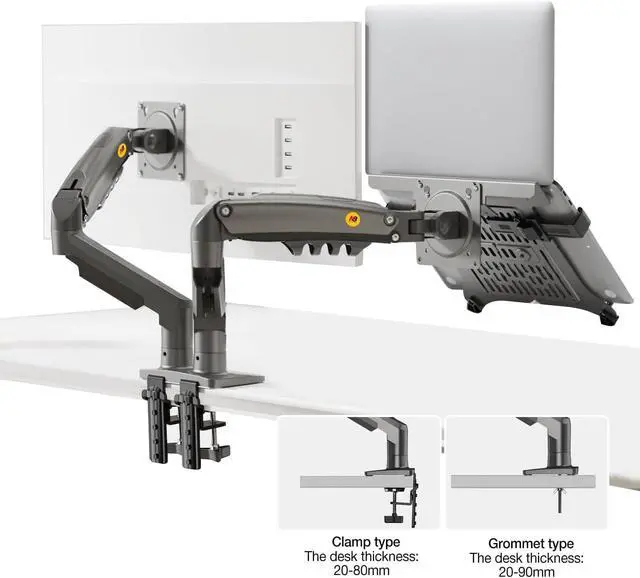 Fully Adjustment Built in gas spring mechanism, the tray is detachable and laptop monitor mount height is adjustable. The monitor arms easily tilt, swivel
