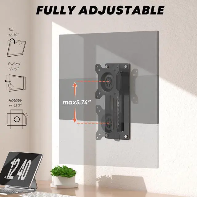 Fully Adjustment: Enjoy ergonomic viewing angles that increase comfort and reduce glares with tilt, swivel, rotation and height adjustment functions from this wall mount; You can customize your monitor in portrait or landscape orientation