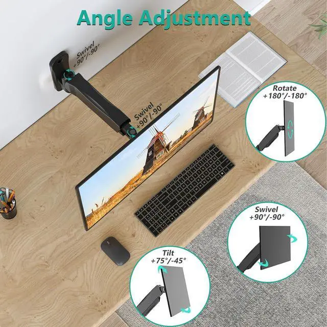 Compatibility: Fits one monitor up to 32", maximum support weight up to 19.8 lbs. Detachable mounting holes with 75x75mm or 100x100mm compatibility. Heavy-duty wall plate is integrated with both brick wall and wood wall