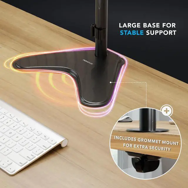 Engineered for stability Heavy-duty steel construction and a reinforced freestanding base deliver rock-solid support with zero wobble, while a grommet mount option adds extra security.