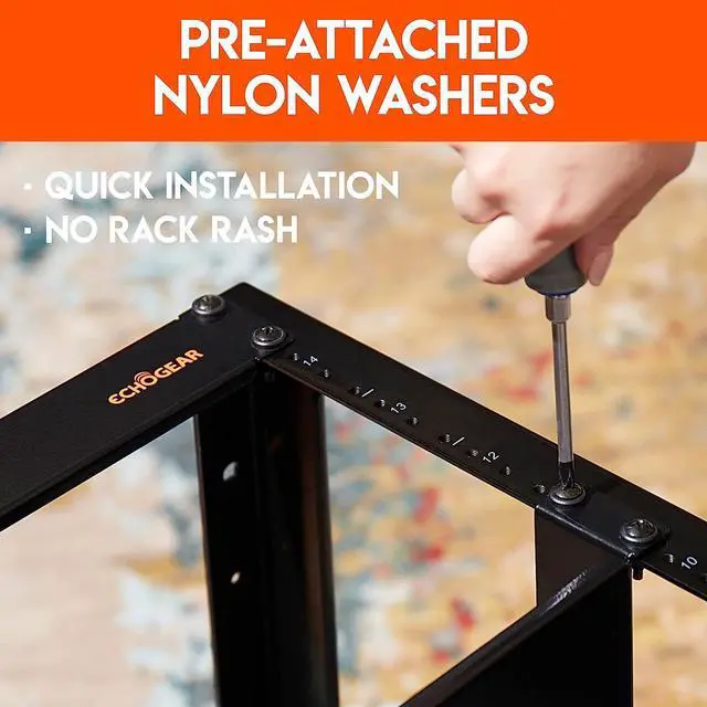 Rack rash? No thanks. Pre-attached nylon washers save time and keep your rack looking nice. Just bring a Philips screwdriver and let' s get to it.