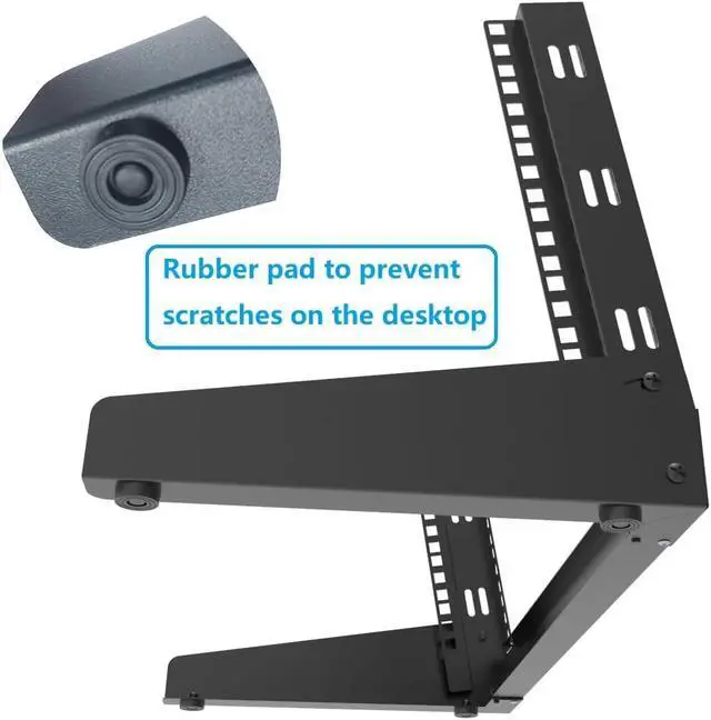 Non Slip Feet: The non slip feet at the base make the mini 2 post 6u tabletop rack stands steadily and protects your table from scrapes well.