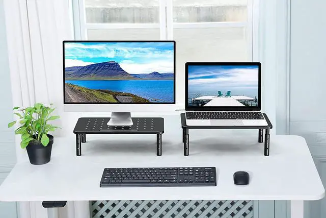 STRONG & STABLE DESIGN: Holding up to 44 lbs, this adjustable monitor riser is made of super durable steel for heavy monitors. The adjustable feet is padded with anti-skid rubber for stability, which also protects your desk surface from scratches