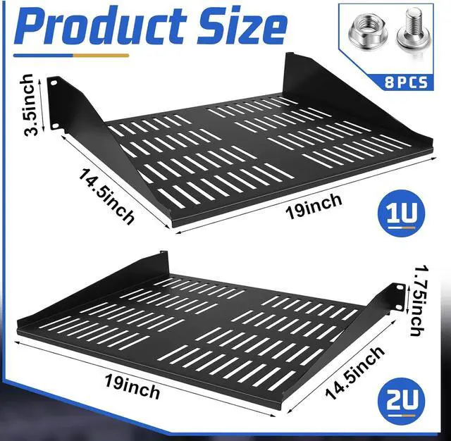 Universal 19 Inch Fit: network shelf is designed to fit the EIA-310 standard 19 inch server rack, this vented server rack can accommodate an internal depth of 14.5 inches for your data, networking, providing additional storage space for your tools, audio and video accessories, and can be applied in combination with a distribution rack