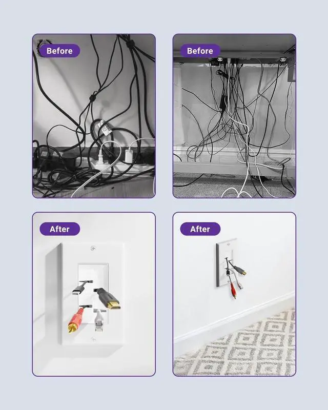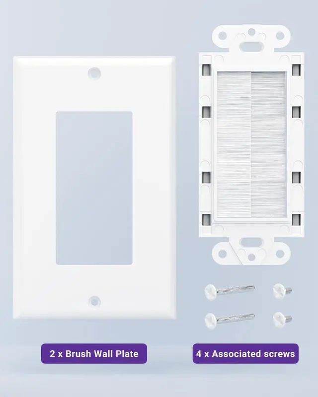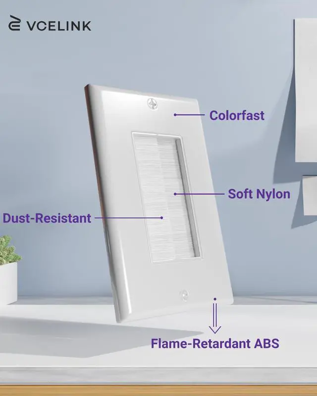 STURDY AND RELIABLE: The wall plates are made from ABS material for strength, durability and and flame retardancy. The flexible nylon brush protects cables from damage and maintains its shape even with frequent twisting.