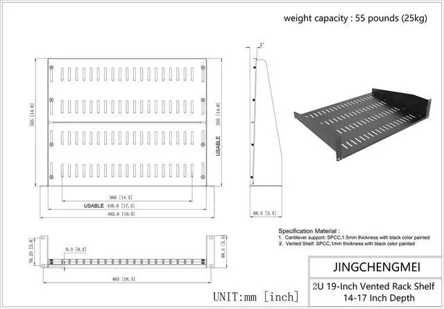 Good Loading Capacity Design: 2U rack mount shelf is tilted upwards by 2 degrees to compensate for load capacity.