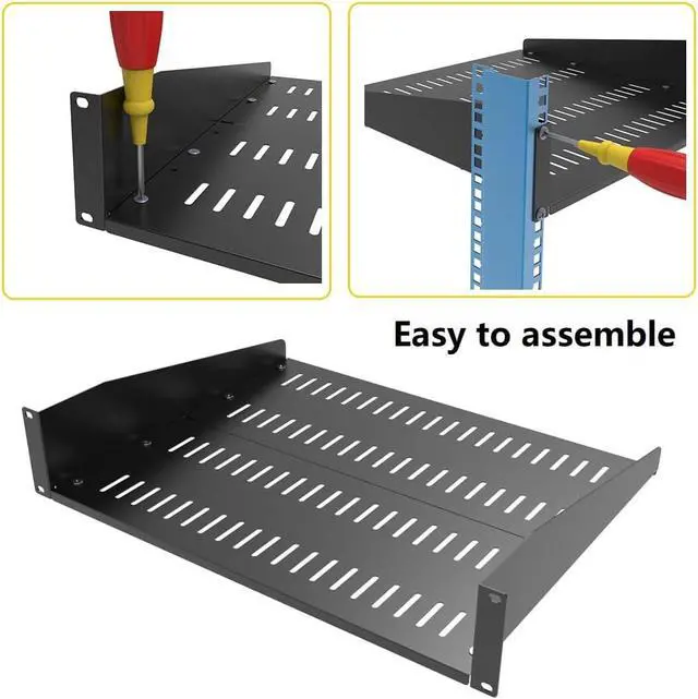 Easy Assembly: This 2u vented cantilever tray Arrives disassembled for convenient installation in your desired rack location. Including the screws for assembly and installing onto your rack.