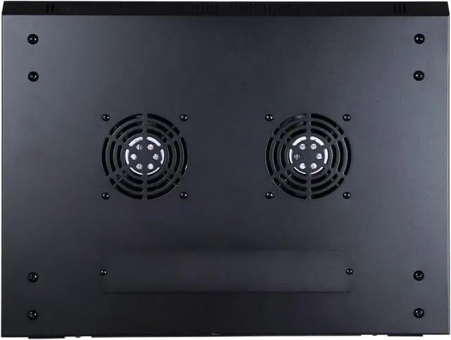 Removable and reversible front door and removable side panel with lock, each with quick-release mechanism. The vented frames and two cooling fans provide excellent air ventilation.