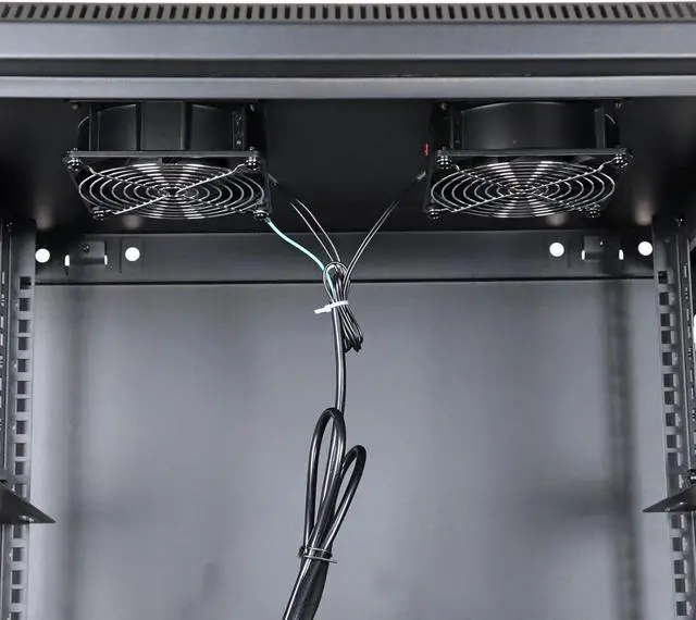 Includes: 1 x Wall mount network server cabinet with cooling fans (easy assembly required) / 1 x Screw package / 2 x Keys
