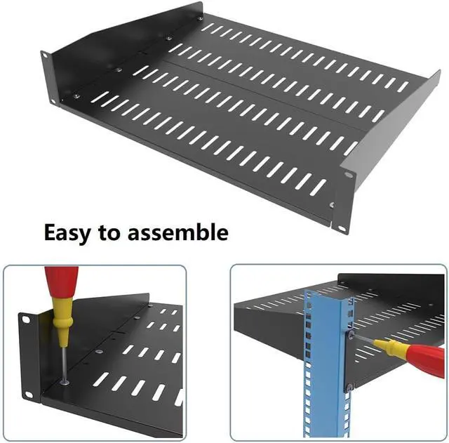 Easy Assembly: This 2u vented cantilever tray Arrives disassembled for convenient installation in your desired rack location. Including the screws for assembly and installing onto your rack.
