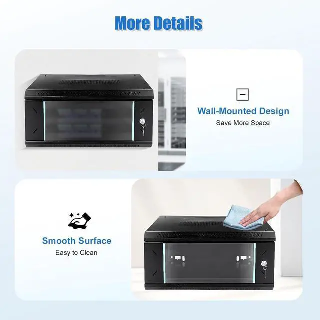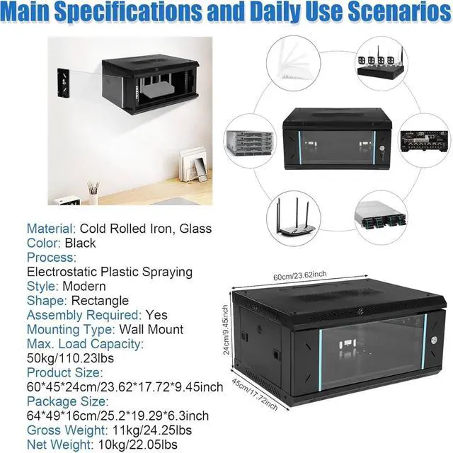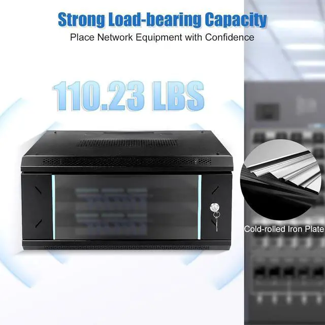 STRONG LOAD-BEARING CAPACITY: Designed to support up to 110.23 lbs, this network cabinet offers excellent weight capacity for your network equipment. Whether you' re storing routers, switches, or small servers, this cabinet provides a stable and secure storage solution.