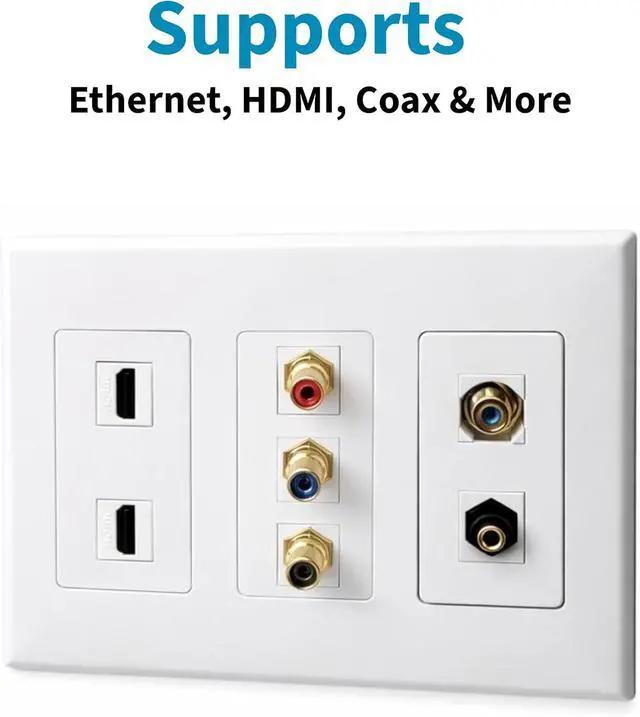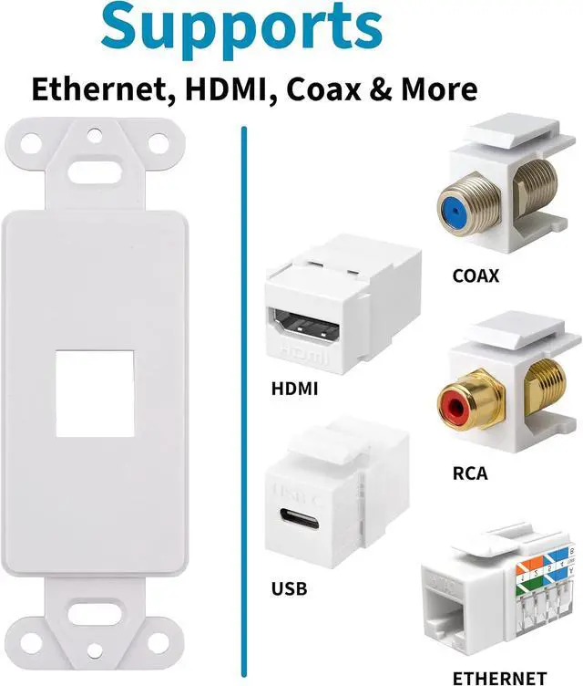 Design: Supports Ethernet, HDMI, Coaxial, and other Keystone Jacks for a clean, professional setup.