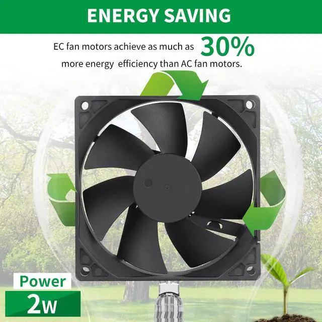 Energy savingEC fan motors achieve as much as 30% more energy efficiency than AC fan motors. EC fan small size and space saving, strong plastic material, light weight and easy to install