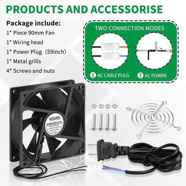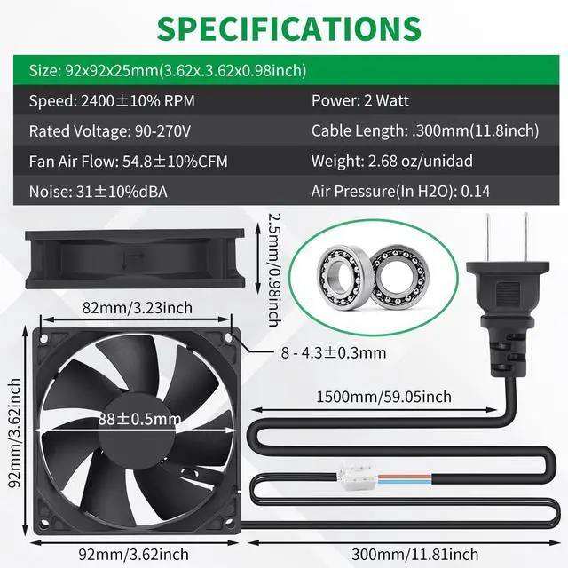Dual Ball BearingLong-term work. Long life-50, 000 Hours. computer fan with 4.9 feet AC plug. Please feel free to talk to us if you have any problems using the product or need technical support. We will reply within 24 hours