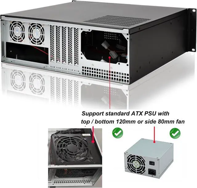 Supports standard ATX PSU with top / bottom 120mm or side 80mm fan or SFX PSU (need to use the ATX to SFX braccket in screw box
