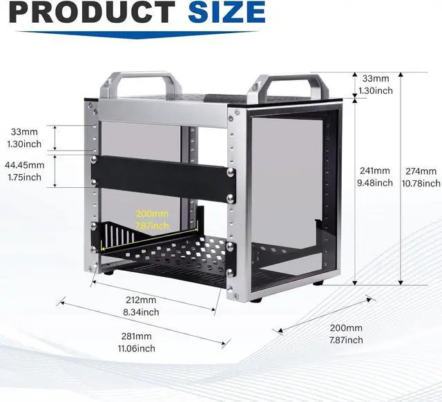 4U StandardThe cabinet has a height of 4U, which is a standard unit size. With 1U equaling 1.75 inches, 4U implies a height of 7 inches.